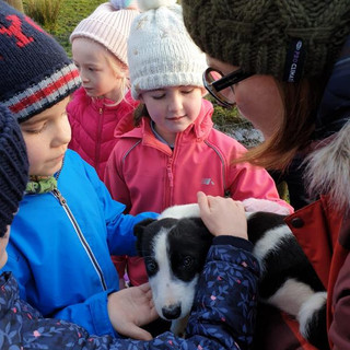 On Friday 6th December, the children from 2nd Class visited the Newport Shepherds in Derradda, They saw an exhibition of sheep herding from Alan and Paul, and learned how sheepdogs help the farmers and how they are trained. They also got to meet the friendly sheepdog puppies and hold them.