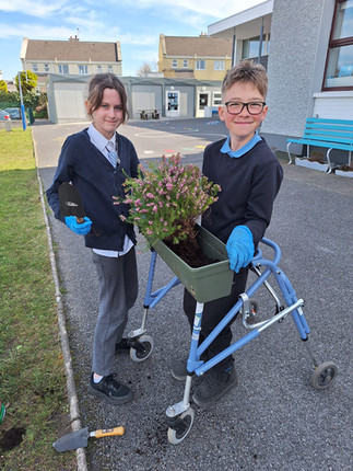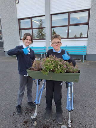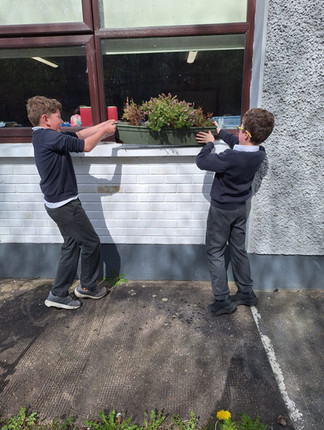 4th class did a bit of gardening in the sun. Our window boxes will be in full bloom for the rest of the school year.