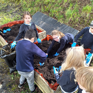 The children in 2nd Class were busy today preparing boxes for replanting.