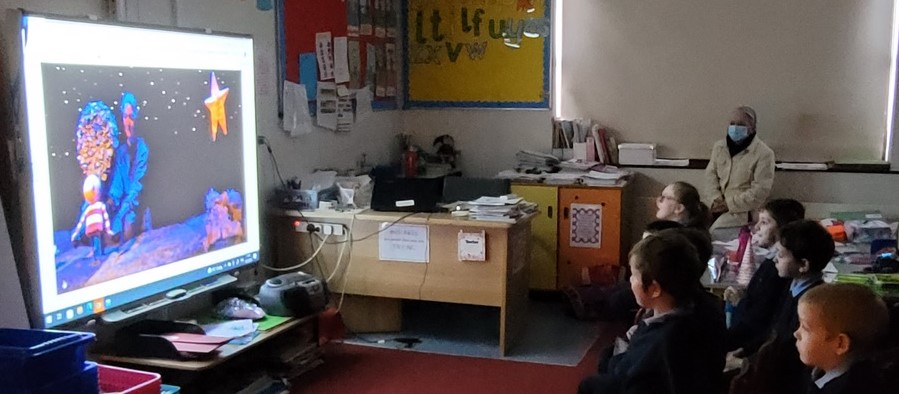 Today, it was the turn of Senior Infants and 2nd Class to enjoy popcorn and a show, courtesy of the Parent Association. Lily and Fiona joined us in the school hall to make fresh popcorn to the children before they returned to their classrooms to view the magical show, 'How to Catch a Star', staged by Branar Productions and made available through the Linenhall Arts Centre Castlebar.