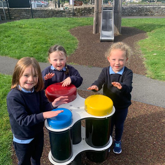 We love our outdoor classrooms in Newport - The Junior Infants had a great time in the Playground today...
